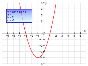 В упражнении задан график функции y = x2 +2x - 3, где a = 1, b = 2 и c = -3