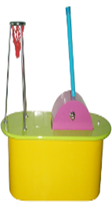 Данные палочки по очереди вставляются в ключ, в результате чего загорается лампа, если материал палочки – проводник. Проводящие материалы: медь. Не проводящие материалы: оргстекло, эбонит, резина дерево.