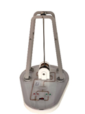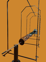 Магнит закреплен на подвесе, посетитель отклоняет маятник, что приводит к колебательеым движениям вокруг горизонтальной оси, закрепленной на опорах.