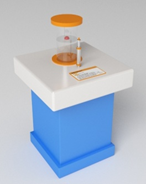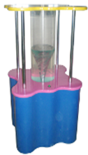 Экспонат демонстрирует образование водной воронки при круговом движении жидкости в вертикальном цилиндрическом сосуде. Посетитель вращает ручку, тем самым передавая вращательное движение внутрь цилиндрического сосуда, и наблюдает водную воронку.