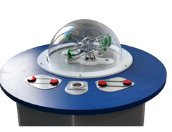 Экспонат демонстрирует образование и движение турбулентных потоков в атмосферах планет. Посетитель, вращая полусферу, вызывает движения потоков жидкости, которые могут быть ламинарными или турбулентными в зависимости от скорости и равномерности вращения.