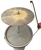 Экспонат демонстрирует эффект появления фигур, образуемых скоплением мелких частиц (например, песка) вблизи пучностей или узловых линий на поверхности упругой колеблющейся пластинки. Посетитель водит по краю пластины смычком, что провоцирует колебательные движения пластины. Песок на пластине принимает разнообразные формы.