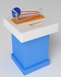 Экспонат демонстрирует момент инерции. Посетитель располагает грузики на одинаковых расстояниях от оси вращения, затем отклоняет один из маятников от первоначального положения на угол не менее 30 градусов, при этом второй маятник остается неподвижным. Затем посетитель повторяет эксперимент, отпустив первый маятник.