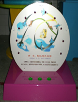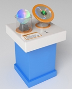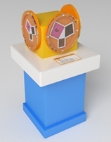 Экспонат предназначен для определения скорости реакции на раздражающее воздействие (световые сигналы). Экспериментатор выполняет визуально-моторный тест (нажимает засвечнныке шарики на время), тем самым измеряет скорость своей реакции.
