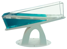 Экспонат предназначен для демонстрации и изучения свойств волн и волновых процессов. Посетитель раскачивает аквариум, который установлен на качелях, тем самым создавая волну.