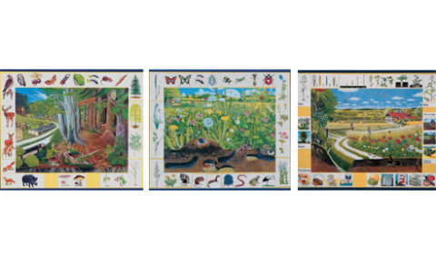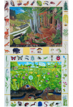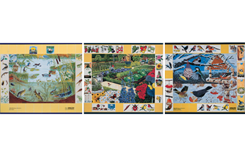 На лицевой стороне плакатов (размер 100x80 см) — изображение изучаемого естественного или искусственного сообщества и пространство для выкладывания магнитных карточек, а на оборотной — можно с помощью магнитных карточек выстраивать пищевые и технологические цепочки. В комплекте — коробка с иллюстрированными и текстовыми карточками (90 шт.)