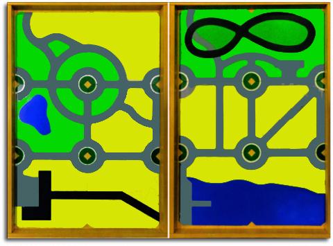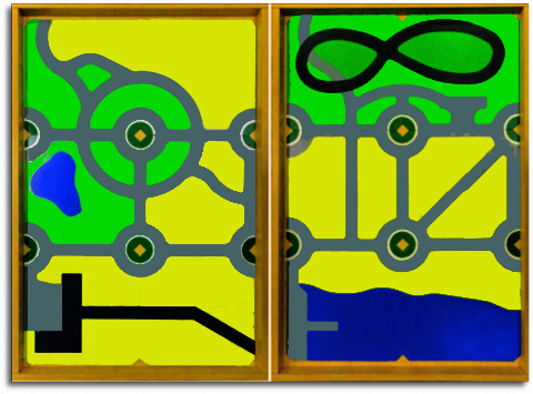 На столешнице стола можно разместить игровые поля различной тематики. Составная фоновая основа ланшафта вместе с дополнительными элементами создают пространство для движения городского транспорта или природный ландшафт. Виниловые игровые поля прямоугольной формы, расчерченные на 35 квадратных секторов (тематика полей: «Алфавит», «Ферма», «Зоопарк», «Город», «Космос».«Город», «Ферма», «Зоопарк», «Космос», «Алфавит»), позволяют организовать сюжетно-ролевые игры и поиграть с ЛогоРоботом ПЧЕЛКА.