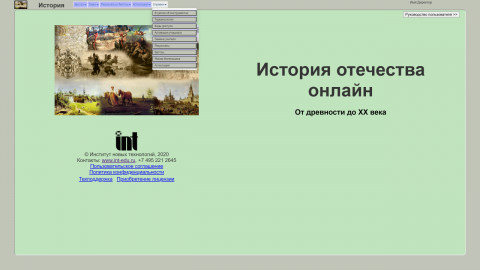 История отечества онлайн — фундаментальный учебник по истории России с древнейших времён до начала 20 века. Может с успехом использоваться учащимися старшей школы, а также всеми людьми, желающими улучшить своё историческое образование. Кроме краткого изложения истории продукт содержит значительный объём текстов известных историков, а также документальные материалы. В состав продукта входят более 650 иллюстраций, персоналии и словарь.