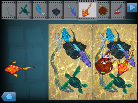 - в «непосредственном режиме» картинку нужно собрать на рабочем поле компьютера из предложенных деталей (как в реальной жизни из бумаги при помощи клея) и запомнить последовательность сборки. Получается "фильм", на кадрах которого изображены детали данного сюжета;