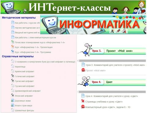 Компьютерная поддержка курса «Информатика 1—4» (Т. А. Рудченко, А. Л. Семёнов, УМК «Перспектива») и курса «Информатика 3—4» (А. Л. Семёнов, Т. А. Рудченко УМК «Школы России») осуществляется на сайте «ИНТернет-классы». Её можно использовать не только как поддержку теоретического курса, но и как целостный курс, который можно изучать дистанционно.