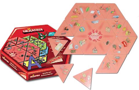Дети должны внимательно рассмотреть карточки и скомбинировать их в соответствии с ассоциациями, которые у них возникают. При правильном решении из всех 18 треугольных карточек должен получиться шестиугольник. Игровое пособие можно использовать при изучении различных учебных тем русского языка (составные слова, звуки, двойные понятия и др.).