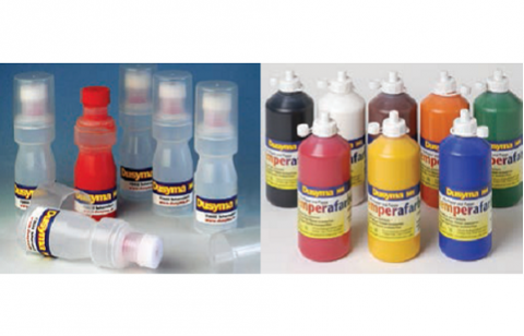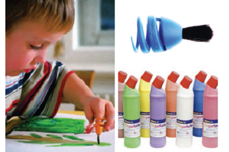 Совсем маленькие дети могут начать с рисования пальчиковыми красками. Обычно они нетоксичны и содержат безвредный горький пищевой компонент, который не вызывает желания пробовать краски снова. Эти краски хорошо подходят совсем маленьким детям, которых кисточка только отвлекает и мешает сосредоточиться. Детям постарше можно предложить пальчиковые кисти или рисовать с помощью флакончиков для рисования с губкой аппликатором, в которые заливается по 50 мл краски нужного цвета.