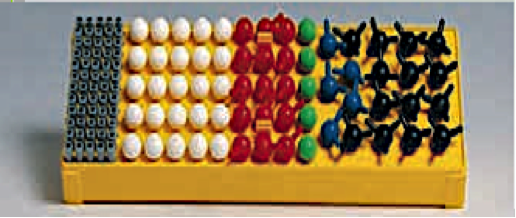 Предназначен для составления объемных моделей молекул веществ и моделирования химических реакций. Включает 47 моделей атомов (шары диам. 3 и 6 см с отверстиями); гибкие соединительные элементы, равные валентности атомов; модель атома гелия — кольцо с перемычкой. На каждой модели атома нанесено обозначение химического элемента, порядковый номер, относительная атомная масса.
