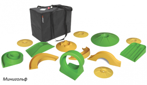 Комплект для игры Минигольф содержит все необходимое для организации тренировки: лунки, препятствия, мячи, клюшки и даже блокнот для записи набранных очков. Выполнение правил игры требует точности движений, сосредоточенности и хорошей координации.