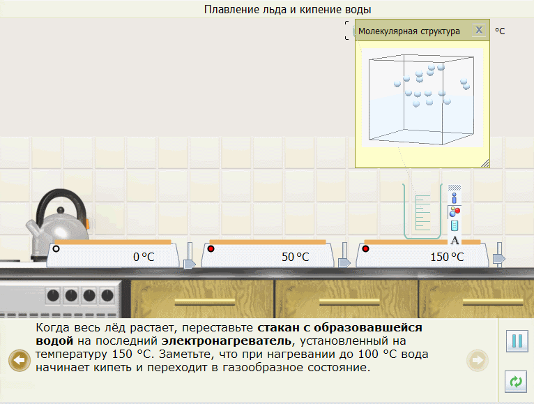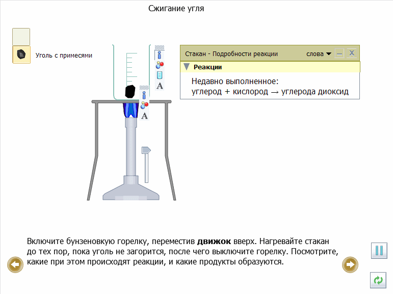 Реактивы, приборы, готовые модели в виртуальной химической лаборатории. Можно проводить наглядные виртуальные опыты, изучать количественные и качественные характеристики химических реакций. На экране — то, что видно в реальном эксперименте: горение, парообразование, изменение окраски и объема и т.п. Превращение веществ может отображаться в формульном, ионном или текстовом виде, а также с помощью трехмерной картинки атомной структуры вещества. Многие виртуальные опыты являются моделью реальных процессов и явлений, с которыми ученик встречается в природе и быту.