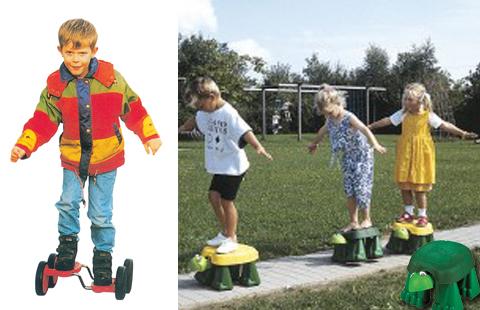 - Игровые гимнастические ролики-тренажеры «Шагомобиль» (педальный) и «Черепаха» (на 4-х лапах) приводятся в движение путем перемещения центра тяжести тела ребенка.