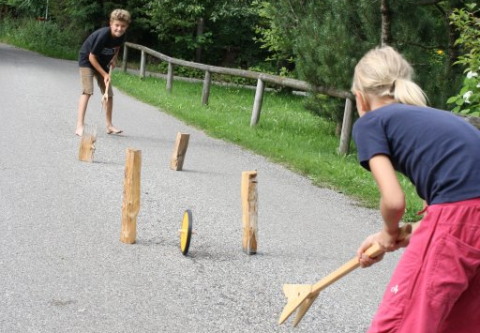 - Игровой набор «Поймай колесо» предназначен для игр на свежем воздухе. Колёса нужно катить при помощи специальных клюшек-рогатин. Колесо должно, не останавливаясь, преодолеть различные препятствия и прокатиться как можно дальше, хоть 50 метров. Игру можно разнообразить, например, сбивать колесом кегли, попадать им в ворота, прокатывать по мостикам, делать «змейку», огибая различные препятствия и т.п.