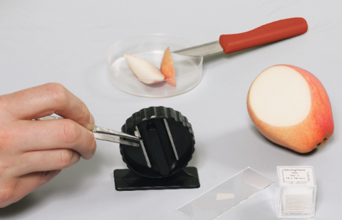 - Кожица лука, пыльца растения, водоросли элодея или звездчатого мха.