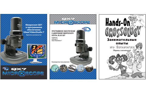 - Микроскоп цифровой Digital Blue QX7: Справочное пособие. Руководство по эксплуатации. – М.: ИНТ. — 16 с. (Содержит информацию о составе поставляемого комплекта, устройстве микроскопа, его настройке, установке программного обеспечения; рекомендации и полезные советы по работе с микроскопом, поддержании его исправности и работоспособности; обнаружении и устранении неисправностей. )