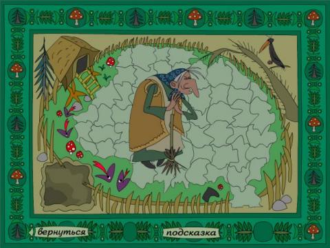 В ходе выполнения игровых заданий нужно будет поймать яблоки, которыми белка бросается в ежика, подобрать булки, летящие из волшебной печки, замостить дорожку, по которой можно пройти через сад Бабы-Яги, найти насекомых, прячущихся под опавшими листиками, очистить источник живой воды от бытового мусора и отгадать музыкальную мелодию, которую наигрывает забавная гармошка. Также на каждой странице книжки предложена маленькая игрушка для отдыха — картинка для сбора по кусочкам (паззлы), всякий раз новая.