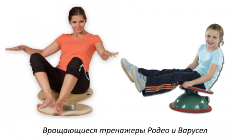 - Вращающиеся тренажеры используются для тренировки вестибулярного аппарата. Вращение — это серьёзная проверка возможности удерживать равновесие.