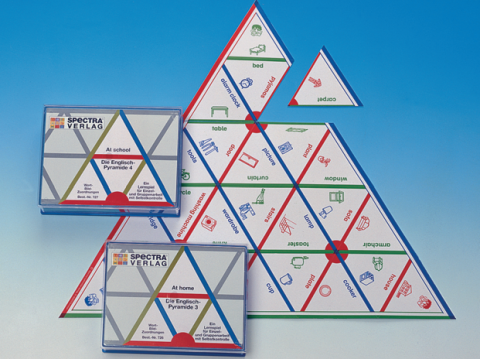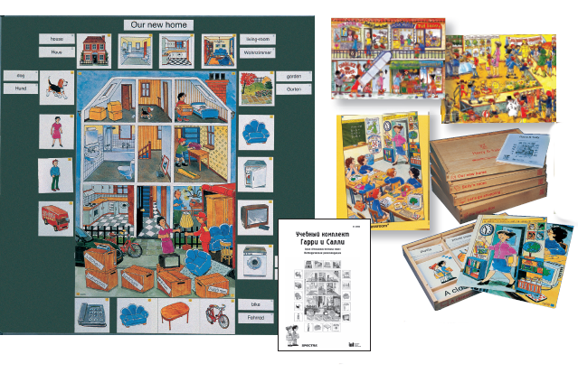 Плакаты дополняются лингвистическими пирамидами (4 англ./3 нем.) и двумя игровыми пособиями Memo Game и Spinning Game, построенными на сопоставлении картинок и слов английского и немецкого языков, и Методическими рекомендациями.