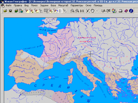 Около 60 цифровых карт по всемирной истории от Древного мира до Новейшей истории, реализованные в формате ГИС «Живая География». Возможность наложения исторических карт на географические помогает соотнести историю с географией – сопоставить прошлое и настоящее для одной и той же территории.